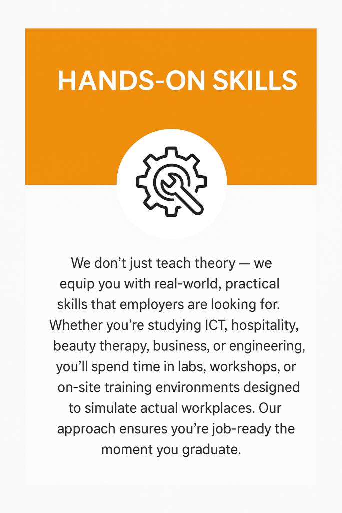 The school of Cosmetology combines theory with practical workshops for industry-ready graduates.